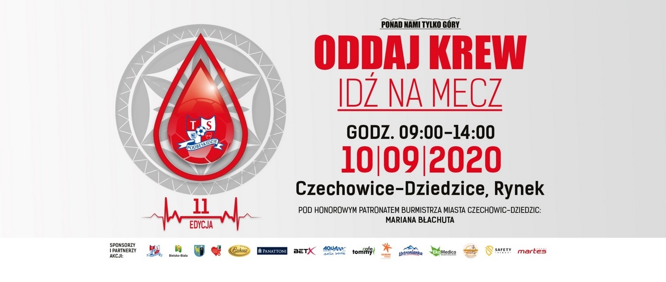11. edycję akcji Oddaj krew, idź na mecz! inaugurujemy w Czechowicach-Dziedzicach. W czwartek 10. września na tutejszym rynku w godzinach 9:00 - 14:00 stanie specjalny ambulans, w którym kibice będą mogli oddawać krew. Zapraszamy do wzięcia udziału w zbiórce krwi!