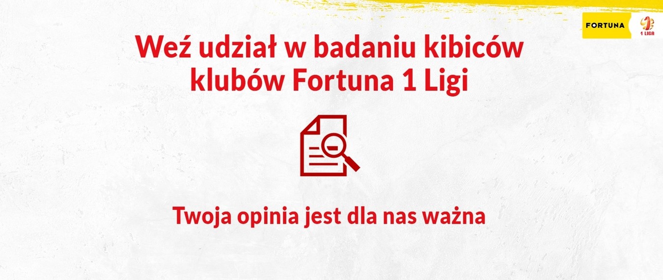 Do udziału w badaniu zachęcani są fani wszystkich klubów występujących w Fortuna 1 Lidze oraz pozostali sympatycy piłki nożnej śledzący pierwszoligowe zmagania. Ankieta dostępna jest pod adresem https://badaniekibicow.webankieta.pl/. Jej wypełnienie zajmie tylko kilka minut.
