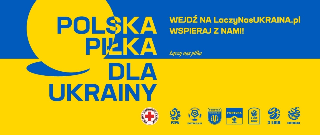 Internetowa zbiórka funduszy rozpocznie się 1 marca równolegle do najbliższych meczów Fortuna Pucharu Polski, a następnie będzie kontynuowana w trakcie najbliższych kolejek PKO Bank Polski Ekstraklasy, Fortuna 1. Ligi, eWinner 2. Ligi, 3. Ligi, a także Ekstraligi kobiet. Cały polski futbol wspiera Ukrainę! Zbiórka pieniędzy zostanie przeprowadzona we współpracy z Polskim Czerwonym Krzyżem.