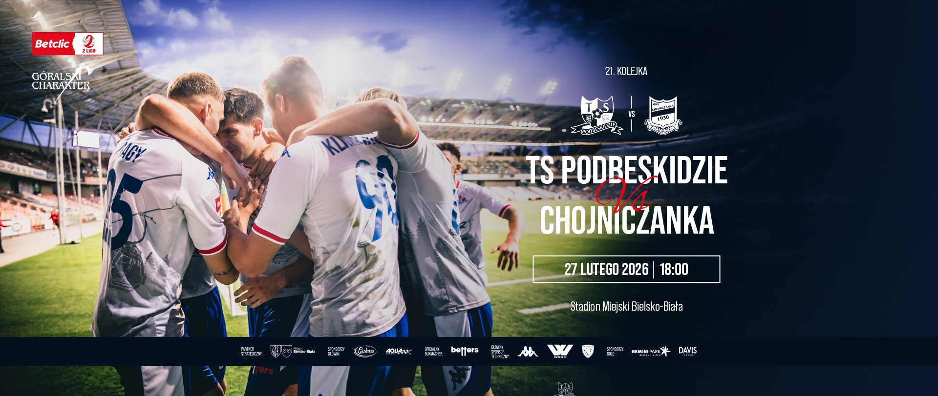 Poprzedni pojedynek z Chojniczanką zakończył się naszym jednobramkowym zwycięstwem, więc zrobimy wszystko, by nawiązać formą do tamtego spotkania i rozpocząć marsz w stronę jeszcze wyższych pozycji w tabeli. Mecz zapowiada się o tyle interesująco, że choć zespół z Chojnic plasuje się w tabeli trzy pozycje niżej od "Górali", traci do nas zaledwie jedno oczko. Podopieczni trenera Marka Brzozowskiego pod koniec rundy również złapali dobrą dyspozycję, wygrywając trzy z pięciu ostatnich ligowych spotkań. Jedno jest więc pewne, że na murawie będzie się działo!